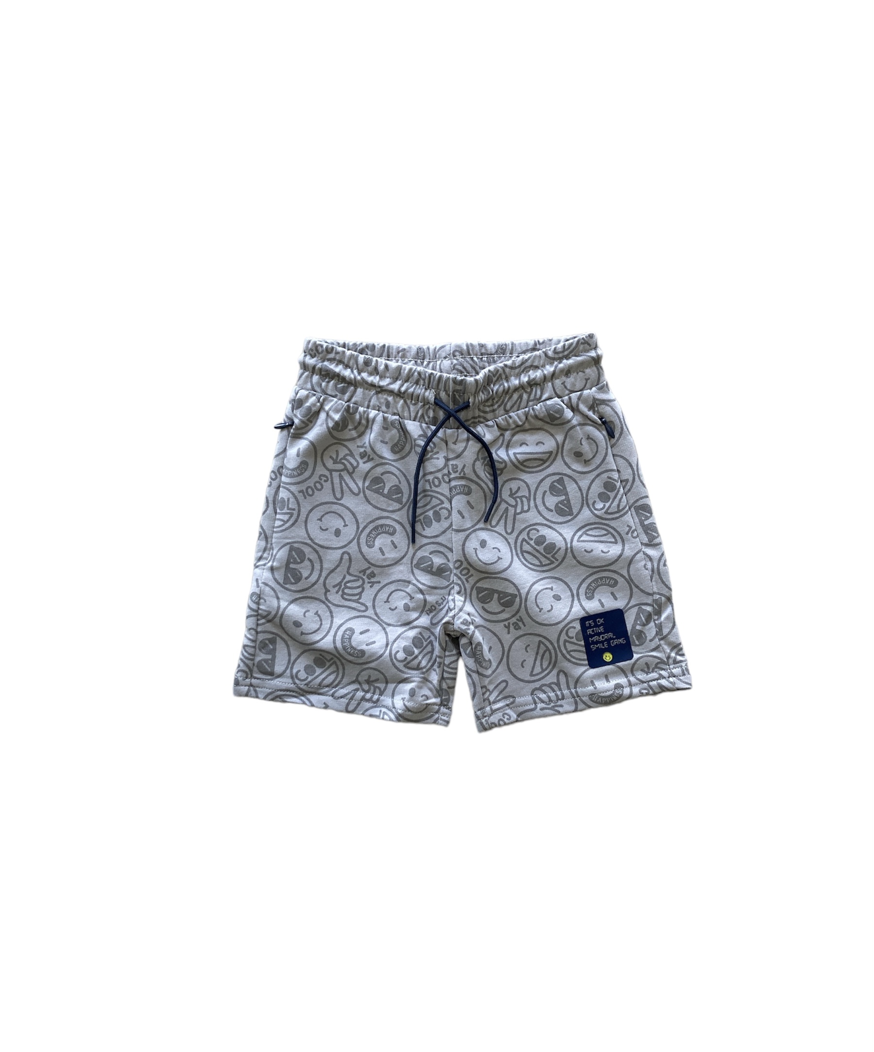 bermuda bimbo in felpa colore sabbia con stampa smile