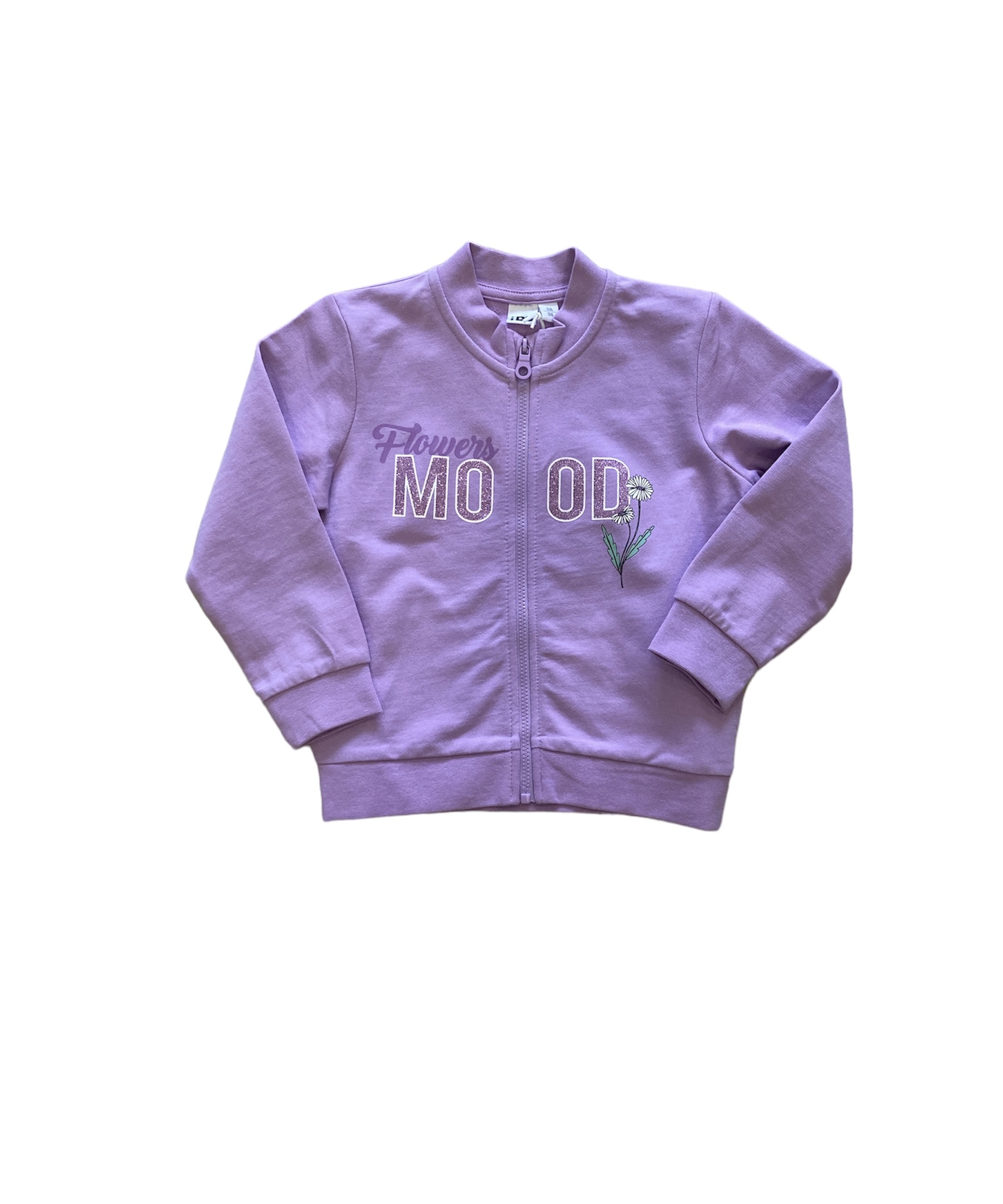 felpa leggera bambina lilla con zip e stampa Flower Mood